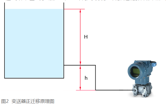 變送器安裝位置與測量液位水平高度不同是實際測量中的普遍現象,如圖2所示為一種遷移形式。