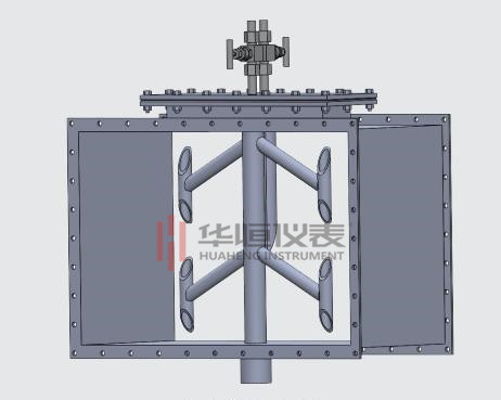 工業(yè)現(xiàn)場大口徑氣體流量計(jì)安裝處,由于空間所限直管段長度不夠是普遍現(xiàn)象,這時(shí)管道內(nèi)旋轉(zhuǎn)流及流速分布嚴(yán)重畸變,流量計(jì)儀表系數(shù)產(chǎn)生很大偏移,非圓截面(矩形、多邊形等)管道內(nèi)流速分布更加復(fù)雜,并且大小管道并不具備相似性,給流量測(cè)量帶來很大的困擾,我公司生產(chǎn)的多點(diǎn)矩陣流量測(cè)量裝置,通過把整個(gè)管道截面分成N個(gè)等面積單元,流量傳感器上設(shè)總壓孔,總壓孔的位置正好處于每個(gè)單元面積的中心位置,所測(cè)總壓即反映了各個(gè)單元面積的流速大小,并在流量傳感器中將各點(diǎn)總壓平均后,和位于傳感器背流方向軸線位置的靜壓檢測(cè)口測(cè)得的靜壓,分別引出流量傳感器,形成差壓輸出,差壓開方與流量存在線性關(guān)系。