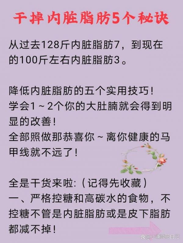 因此,想要瘦肚子,我們首先要減少內(nèi)臟脂肪的積累。下面,我將為大家介紹一些減少內(nèi)臟脂肪的方法。