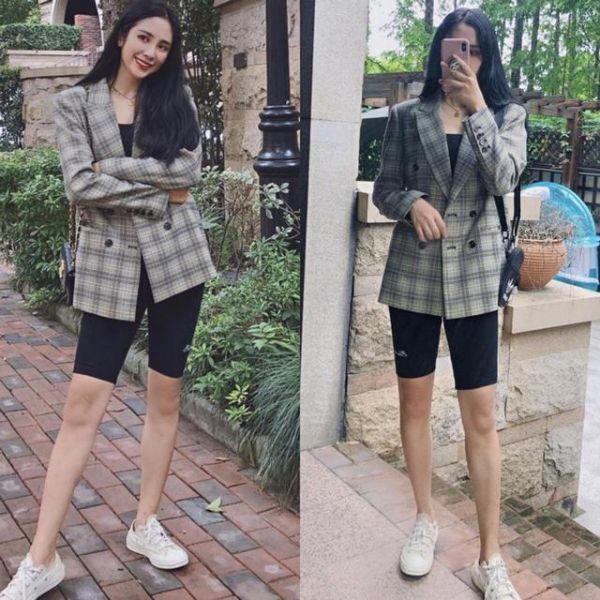一件休閑的格子襯衫,比起一般的黑白相間的西裝,顯得更加的時尚,下面是一條牛仔短褲,這是一種經(jīng)典的混合風(fēng)格,將黑色的西裝和黑色的牛仔短褲,“上松下緊”,將商務(wù)和運(yùn)動的感覺完美地地融合在了一起。