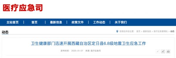 據(jù)國家衛(wèi)生健康委,地震發(fā)生后,當(dāng)?shù)匦l(wèi)生健康部門立即啟動應(yīng)急響應(yīng),配合有關(guān)部門開展傷員搜索等工作,西藏自治區(qū)人民醫(yī)院已調(diào)派 8 輛醫(yī)療救援車輛和 26 名醫(yī)務(wù)人員趕赴當(dāng)?shù)亍?/strong>災(zāi)區(qū)相關(guān)醫(yī)院已開通傷員救治綠色通道,收治床位充足,傷員救援和醫(yī)療救治及公共衛(wèi)生等工作正在有序進(jìn)行。
