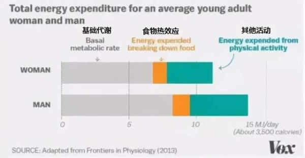 在這四部分中,基礎(chǔ)代謝占到了日常消耗熱量的60%-70%,而身體活動(dòng)熱量只有10%-30%。