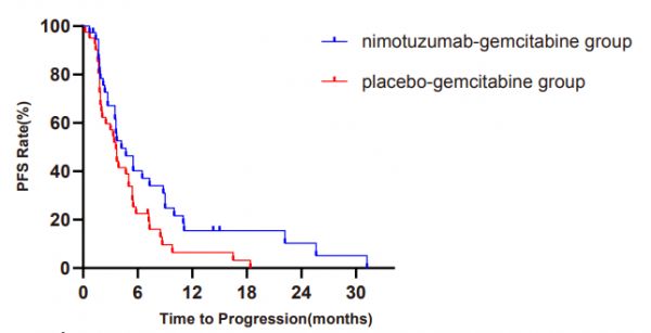 德國學(xué)者曾經(jīng)開展過一項(xiàng)尼妥珠單抗聯(lián)合吉西他濱對比吉西他濱的II期研究(PCS07研究),初步發(fā)現(xiàn)尼妥珠單抗聯(lián)合化療組的mOS為8.6個(gè)月,而單純化療對照組僅6個(gè)月(P=0.03);兩組mPFS分別為5.1和3.4個(gè)月(P=0.02)。亞組分析發(fā)現(xiàn)對于EGFR高表達(dá)的患者和K-Ras野生型的患者,療效更好。而NOTABLE研究為確證性III期研究,獲得成功,一錘定音。