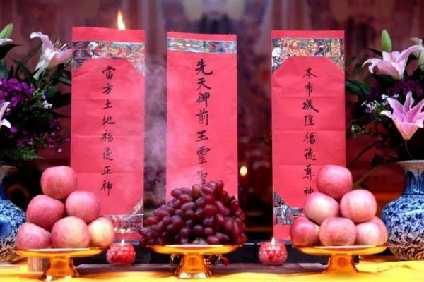 人們在進入供奉神仙的大殿里燒香時,會發(fā)現(xiàn)供桌上經(jīng)常會擺放著許多的供品,道教將供于神壇的這些供品稱之為“五供”,即香、花、燈、水、果?!?/p>