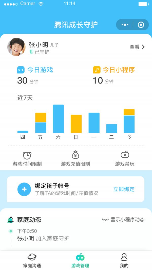 微信小程序:騰訊成長(zhǎng)守護(hù)