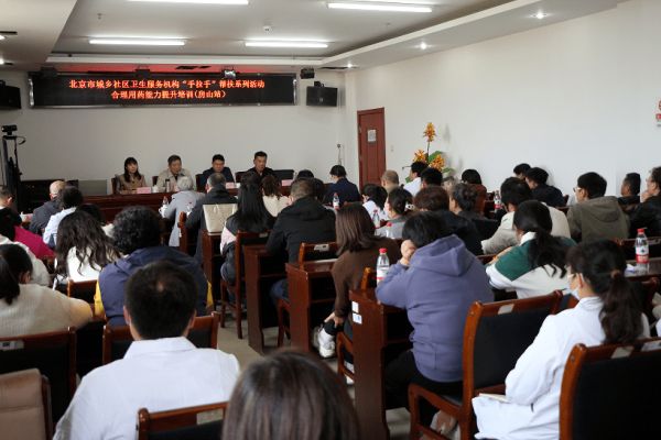 10月31日下午,北京市城鄉(xiāng)社區(qū)衛(wèi)生服務(wù)機(jī)構(gòu)“手拉手”幫扶系列活動(dòng)合理用藥能力提升培訓(xùn)(房山站)在韓村河鎮(zhèn)社區(qū)衛(wèi)生服務(wù)中心舉辦。北京市社區(qū)衛(wèi)生協(xié)會(huì)會(huì)長(zhǎng)王力宇,北京市社區(qū)衛(wèi)生協(xié)會(huì)社區(qū)藥學(xué)服務(wù)分會(huì)主任委員陳世財(cái)、副主任委員兼秘書(shū)長(zhǎng)平學(xué)慧,房山區(qū)衛(wèi)生健康委副主任王中旭以及25家社區(qū)衛(wèi)生服務(wù)中心相關(guān)人員參加。