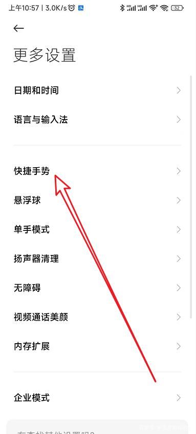 接下來(lái)在打開的手機(jī)更多設(shè)置頁(yè)面中點(diǎn)擊“快捷手勢(shì)”菜單項(xiàng)。