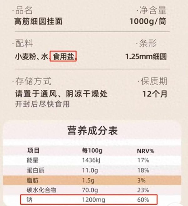 圖:某品牌高鹽的掛面