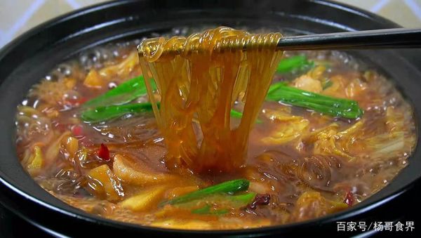 3、轉(zhuǎn)至砂鍋,加入清水后調(diào)味,加入食鹽、白胡椒粉、醬油、黃豆醬各一勺,攪勻,大火煮開。下入紅薯粉條,蓋蓋煮5分鐘,將紅薯粉煮熟。然后大火收一下湯汁后,下入青蒜苗,美味的白菜燉粉條就完成了。