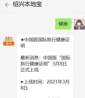 溫馨提示:微信搜索公眾號(hào)紹興本地寶,關(guān)注后在對(duì)話框回復(fù)【健康】可獲中國(guó)版國(guó)際旅行健康證明辦理入口、操作指南、常見(jiàn)問(wèn)題等信息。