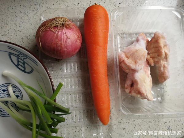 食材:三根雞翅根,胡蘿卜半根、洋蔥半根、一勺醬油、半勺蠔油、梅子酒一勺,蔥花少許、椒鹽一點(diǎn)點(diǎn)。