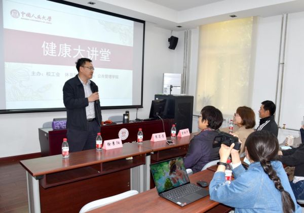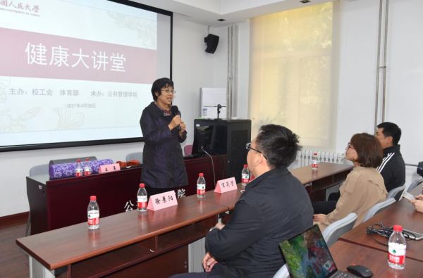 2021年4月28日中午,校工會聯(lián)合體育部主辦的“健康大講堂”在公共管理學院順利開展。主講人為學校體育部副主任、校工會兼職副主席王勇副教授。校工會常務(wù)副主席宋莉芳、副主席金馳華、公共管理學院副書記徐景陽出席,活動由公共管理學院龔曦主持。全校共60余名教職工參加。