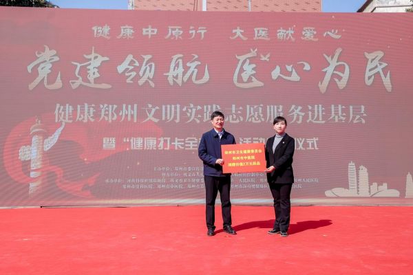 活動現場,鄭州市中醫(yī)院還向鞏義市大峪溝鎮(zhèn)衛(wèi)生院捐贈價值2萬元的中藥制劑。同時,為進一步凝心聚力,號召更多健康領域專業(yè)人士參與到“健康打卡全市域”活動中來,鄭州市衛(wèi)健委發(fā)起“綠城使者,健康鄭州”志愿服務聯盟,并在現場為來自各區(qū)縣的志愿服務代表隊授予隊旗,鄭州市中心醫(yī)院“白玉蘭”志愿者彭彬彬作為志愿者代表宣讀倡議書。隨后,鄭州市衛(wèi)健委黨組副書記喬伍營正式宣告活動啟動。