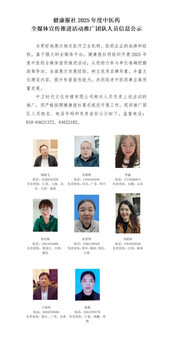 健康報社2025年度中醫(yī)藥全媒體宣傳推進活動推廣團隊人員信息公示