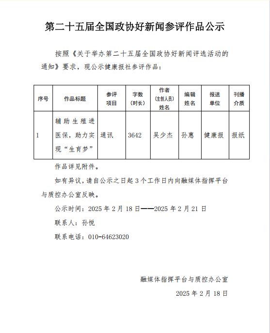 第二十五屆全國政協(xié)好新聞參評作品公示