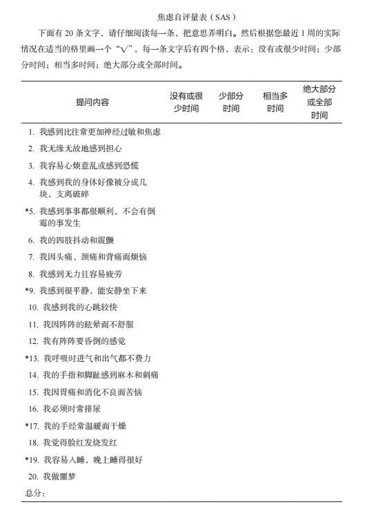 焦慮自評(píng)量表(SAS)