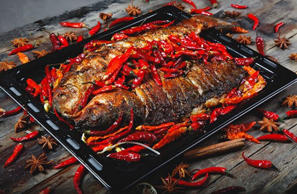 摘要:烤魚是一道菜品。制作原料主要有魚、蘑菇、番茄等。它是指魚類經(jīng)過烤制之后然后進(jìn)行烹飪的一種方法,這種烹調(diào)方式實(shí)現(xiàn)了“一烤二燉”。烤魚,一說發(fā)源于重慶巫溪縣,而發(fā)揚(yáng)于萬州的特色美食,在流傳過程中,融合腌、烤、燉三種烹飪工藝技術(shù),充分借鑒傳統(tǒng)渝菜及重慶火鍋用料特點(diǎn),是口味奇絕、營養(yǎng)豐富的風(fēng)味小吃。