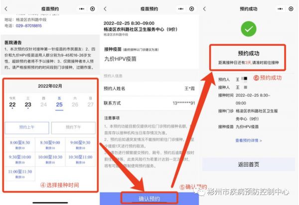 【導(dǎo)語】:進(jìn)入健康陜西公眾服務(wù):點(diǎn)擊“HPV疫苗預(yù)約”→選擇疫苗種類→選擇接種點(diǎn)→選擇接種時間→確認(rèn)預(yù)約→即可預(yù)約成功。
