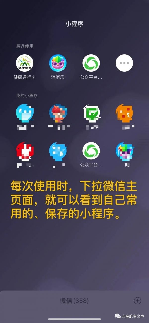 每次使用時,下拉微信主頁面就可以找到已保存的小程序