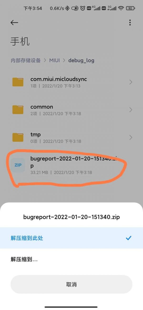 2.生成完畢后打開MIUI/debug_log文件夾,里面的bugreport開頭的壓縮包就是了,將它解壓出來,里面還有一個(gè)文件名中有thyme的壓縮包,再解壓,里面有一個(gè)很大的文本文件[bugreport-thyme-]開頭的就是,打開后全局搜索“healthd”就能找到了