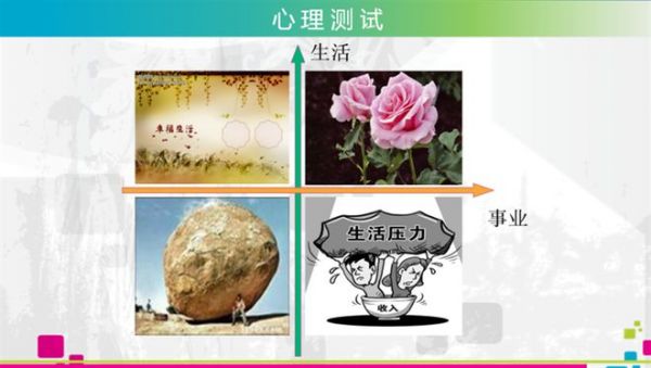 尚教授給全體教師進(jìn)行了心理測試,橫軸為事業(yè),縱軸為生活,通過測試讓老師們清楚地認(rèn)識到自己目前的生活工作現(xiàn)狀。
