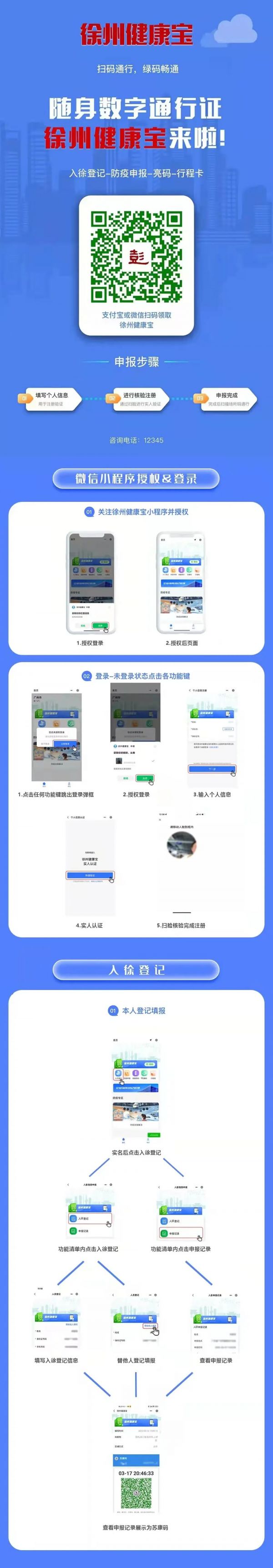 廣大市民可提前注冊徐州健康寶,在進入各類場所時,使用支付寶、徐州健康寶、微信掃一掃功能,掃描場所碼后經查驗即可進入相關場所。