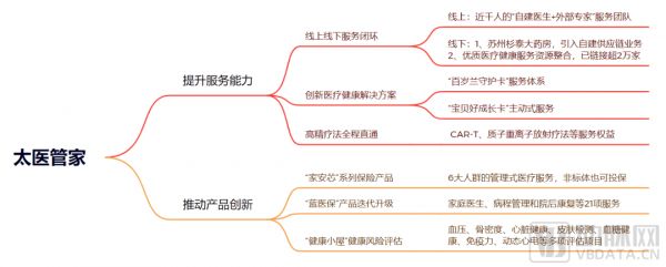 太醫(yī)管家通過管理式產(chǎn)品+服務的布局,打通醫(yī)療、藥品、保險閉環(huán),為用戶提供具有性價比、全生命周期的醫(yī)療健康服務,同時提升保險品種本身的創(chuàng)新力,在賠付過程中產(chǎn)生創(chuàng)新性理賠形態(tài),降低健康險的賠付風險,反哺金融主業(yè)。