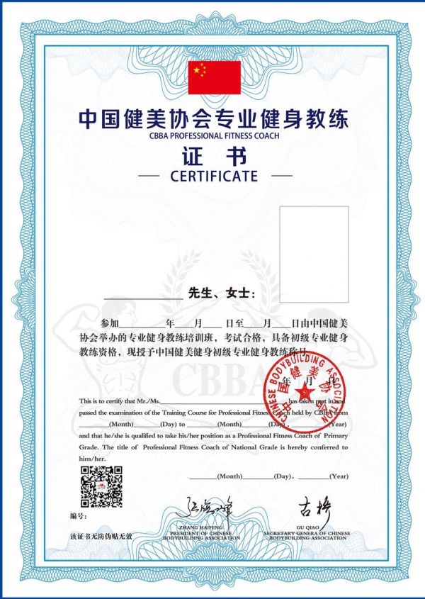 中國(guó)健美協(xié)會(huì)專(zhuān)業(yè)健身教練證書(shū)介紹
