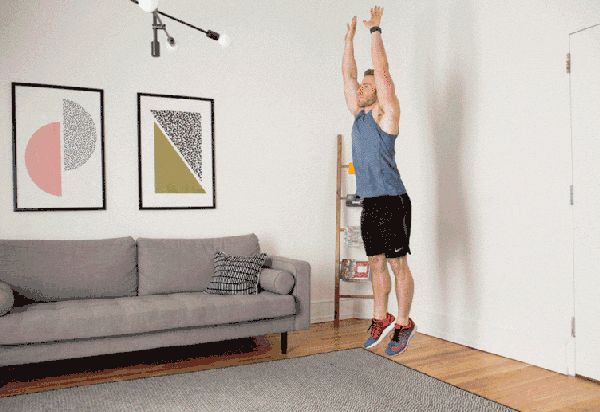 這個(gè)動(dòng)作能夠鍛煉全身肌肉,提高心肺功能,提升心率,促進(jìn)全身燃脂。動(dòng)作標(biāo)準(zhǔn):站立,雙手放在胸前,跳起來時(shí)雙腳向外,雙手向內(nèi)并攏,然后再跳回來。動(dòng)作堅(jiān)持20秒,重復(fù)4組。