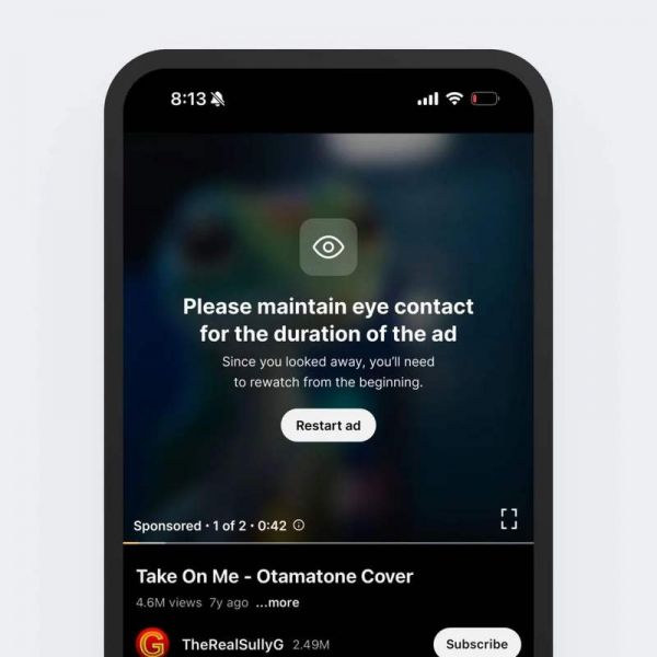 這是什么離譜功能??!實(shí)際上前陣子社交網(wǎng)站X(原Twitter)上的一張截圖就引發(fā)了類似的討論。截圖中的視頻網(wǎng)站在廣告頁(yè)面彈出了通知,指出用戶目光離開了廣告頁(yè)面,想要繼續(xù)觀看視頻只能點(diǎn)擊“重新觀看廣告”按鈕。