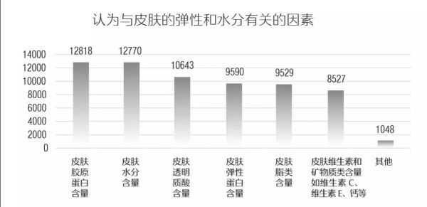 盡管相關(guān)的產(chǎn)品較少,但國(guó)內(nèi)消費(fèi)者對(duì)透明質(zhì)酸依然有著極高的認(rèn)知度,在中國(guó)營(yíng)養(yǎng)學(xué)會(huì)營(yíng)養(yǎng)與保健食品分會(huì)及中國(guó)醫(yī)師協(xié)會(huì)皮膚科醫(yī)師分會(huì)聯(lián)合發(fā)布的《2020中國(guó)美容營(yíng)養(yǎng)白皮書(shū)》,針對(duì)與皮膚彈性和水分有關(guān)的成分的調(diào)查中,絕大多數(shù)受訪者都認(rèn)為膠原蛋白對(duì)皮膚彈性關(guān)系最大,其次是水分、透明質(zhì)酸、彈性蛋白、脂類和維生素礦物質(zhì)。