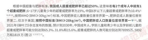 文中顯示,我國成人超重或肥胖率已超過50%,這意味著每2個成年人中就有1個超重或肥胖;6~17歲兒童青少年的超重或肥胖率為19%,中國6歲以下兒童超重或肥胖率為10.4%。
