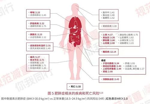 肥胖癥的危害可累及全身幾乎所有器官系統(tǒng),并與增加死亡風(fēng)險密切相關(guān)。