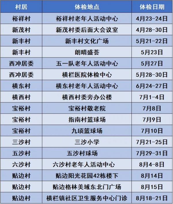 2025年度橫欄鎮(zhèn)65歲及以上老年人體檢各村居時(shí)間安排表