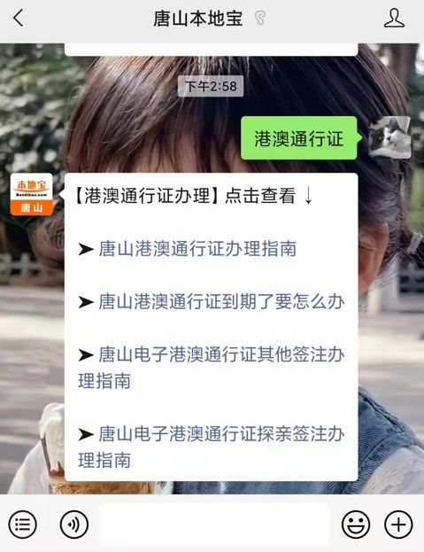 溫馨提示:微信搜索公眾號(hào)唐山本地寶,關(guān)注后在對(duì)話框回復(fù)【港澳通行證】可獲港澳通行證辦理指南、港澳通行證常見問(wèn)題答疑等信息。