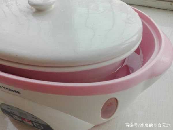 4、在隔水燉鍋中,倒入適量的水,如圖所示。