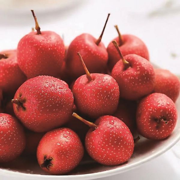 山楂又稱山里紅、紅果等,和蘋果、梨、海棠果同屬仁果類水果,常被加工成糖葫蘆、果丹皮、山楂罐頭、山楂糕、山楂片、山楂飲品等食品。
