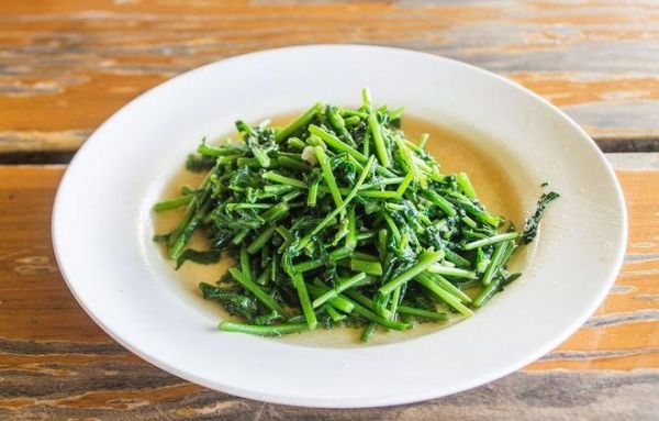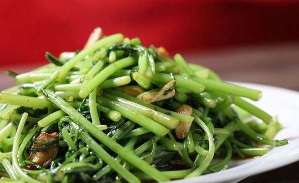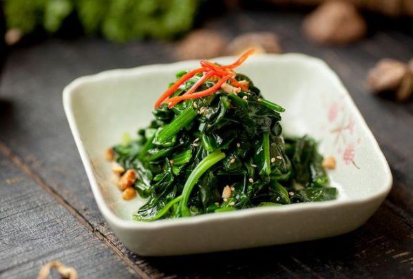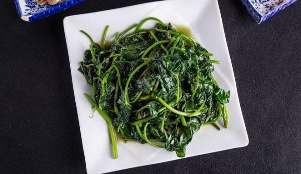 蒜蓉紅薯葉是在清炒紅薯葉的基礎上增加了一些蒜蓉,能夠增加香氣和口感。將新鮮的紅薯葉洗凈后,熱鍋涼油,放入蒜末和姜末炒香,再放入紅薯葉翻炒均勻,加入適量鹽和雞精調味即可。