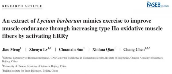 近日,中國科學(xué)院生物物理研究所陳暢課題組在FASEB Journal雜志發(fā)表了題為:An extract of Lycium barbarum mimics exercise to improve muscle endurance through increasing type IIa oxidative muscle fibers by activating ERRγ 的研究論文。