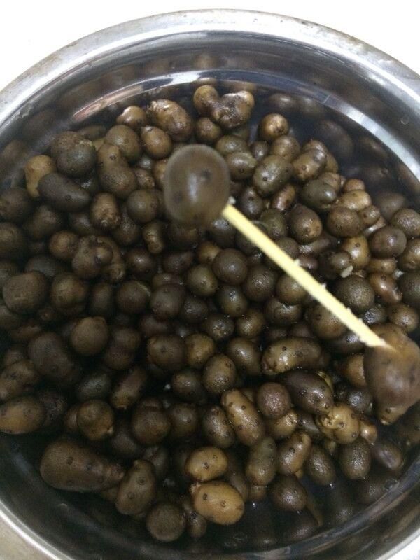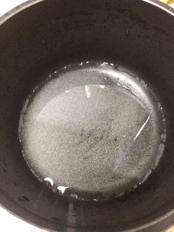 6.煮制白糖變成糖漿,把串好山藥豆淋上糖漿