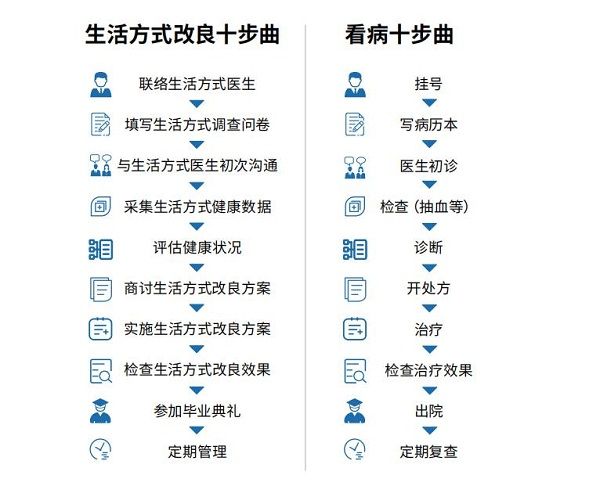 (比較傳統(tǒng)看病模式,生活方式改良十步曲擁有更加完善和人性化的治療過程)