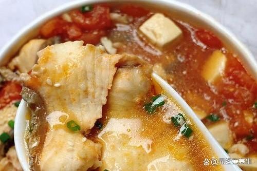 ① 番茄炒軟后加水煮沸,放入煎過(guò)的魚(yú)塊和豆腐。