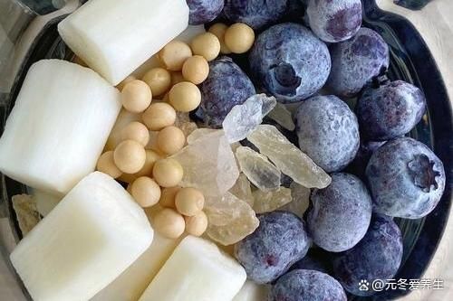 2.材料:山藥100g(蒸熟壓泥)、無(wú)糖酸奶150g 、藍(lán)莓30g 、杏仁/腰果10g