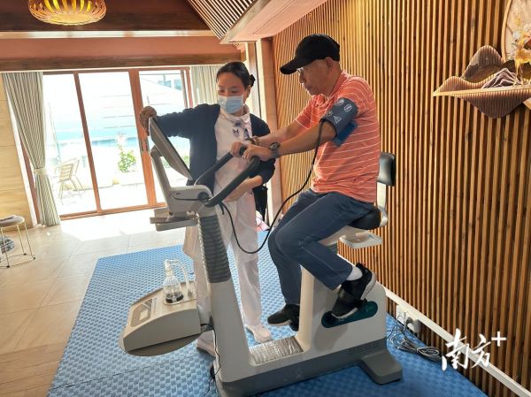 “這臺(tái)機(jī)器可以實(shí)時(shí)監(jiān)測(cè)你運(yùn)動(dòng)時(shí)的心率血壓,一但超過(guò)你的身體負(fù)荷它就會(huì)停機(jī)報(bào)警,幫助你在安全條件下運(yùn)動(dòng),在你能夠負(fù)荷運(yùn)動(dòng)強(qiáng)度下,幫你開(kāi)出一份‘運(yùn)動(dòng)處方’。”珠海市人民醫(yī)院銀發(fā)健康管理中心負(fù)責(zé)人王力指著機(jī)器介紹。