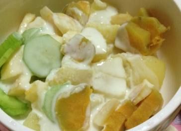 3、酸奶攪勻后倒在黃瓜上,放進(jìn)冰箱里至完全冰凍,就可以享用了。