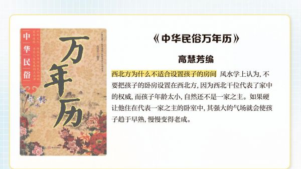 西北干位代表權(quán)威,《中華民俗萬年歷》警告兒童長期居住可能導(dǎo)致早熟傾向。西南方則適合培養(yǎng)責(zé)任感與安全感,但需避免堆放雜物影響氣場流動。