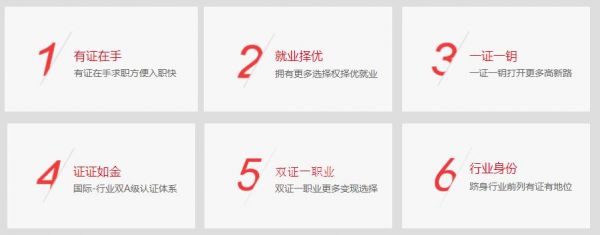 系統(tǒng)全面課程體系,快速學(xué)習(xí)掌握相關(guān)職業(yè)技能;隨時隨地線上學(xué)習(xí),一次報名可享終身免費學(xué)習(xí);考試通過可拿國際+行業(yè)三個證書,國際認可資質(zhì),從業(yè)必備,高薪首選。