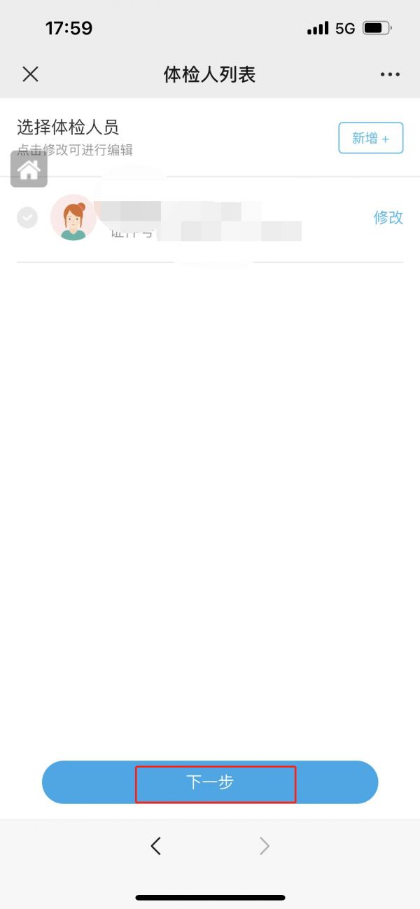 第七步:選擇體檢人員信息,點(diǎn)擊“下一步”;