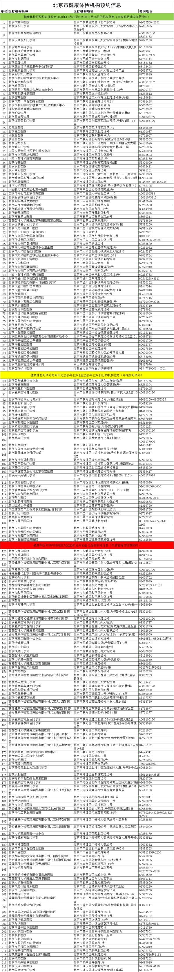 根據(jù)常態(tài)化疫情防控要求,北京市要求各健康體檢機(jī)構(gòu)通過預(yù)約方式開展體檢服務(wù)。為方便有健康體檢需求的團(tuán)體和個(gè)人進(jìn)行預(yù)約體檢,近日,市衛(wèi)生健康委對(duì)全市具有健康體檢資質(zhì)機(jī)構(gòu)的地址、電話和2020年底前預(yù)約情況進(jìn)行了匯總,并予以公布。