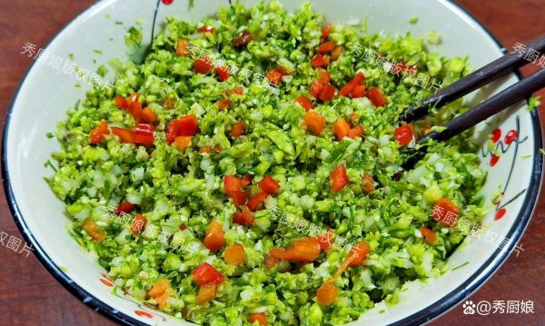 2. 調(diào)配醬料:將切好的韭菜花、秋梨和小米辣一起放入一個大碗中,加入適量的鹽和香油。鹽的用量要適中,不宜過多,以免過咸影響口感。用干凈的筷子將所有食材攪拌均勻,確保每一塊食材都均勻裹上鹽和香油。
